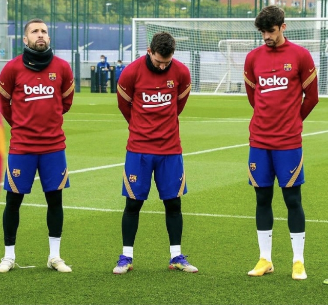 Antes de iniciar su práctica bajo el comando de Ronald Koeman, se guardó un minuto de silencio en la cancha de entrenamientos del FC Barcelona y en las imágenes se puede apreciar lo afligido que se encuentra Lionel Messi ante la partida del Diego.