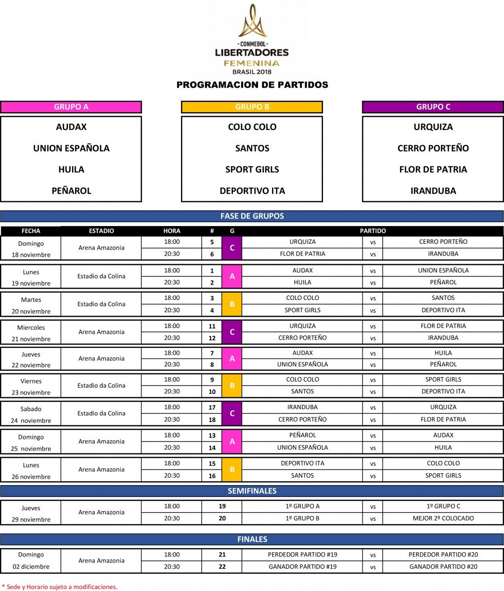 Las Campeonas de la Mitad del Mundo debutarán el próximo lunes enfrentando a Audaz, luego, el jueves 22 de noviembre, se medirán con Peñarol para finalmente enfrentar el domingo 25 al Huila. Solo clasifican a semifinales los primeros de cada grupo y el segundo mejor entre los tres grupos.